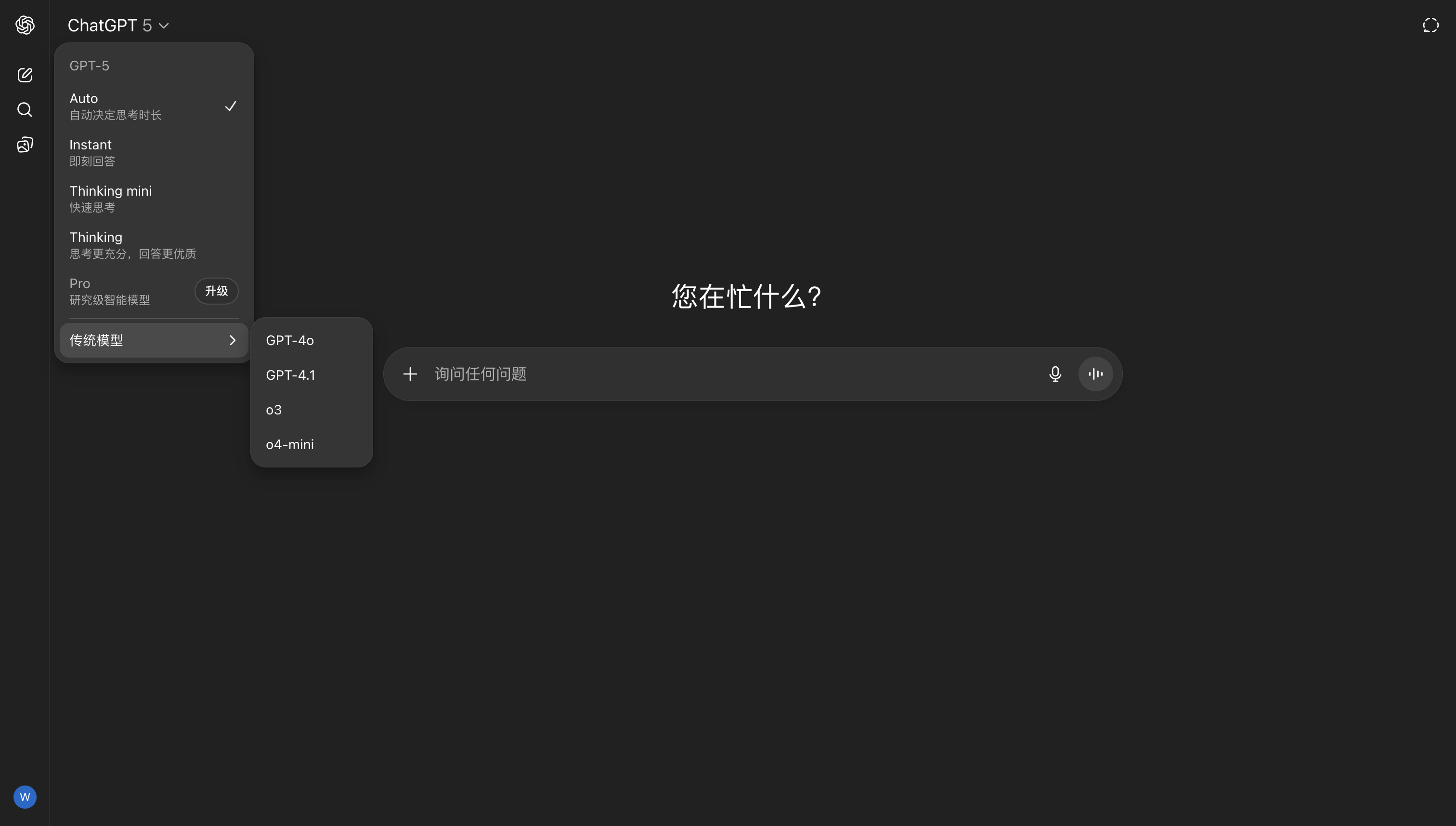 当你的ChatGPT Plus会员到期后,依旧可以使用普通的ChatGPT模型(GPT5-mini)